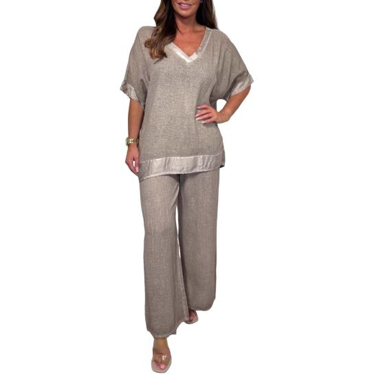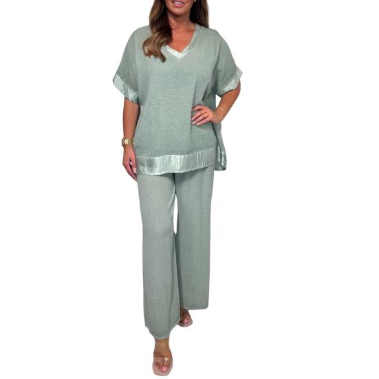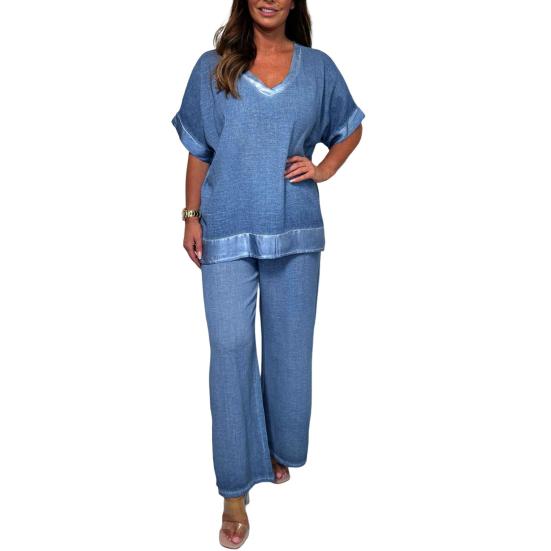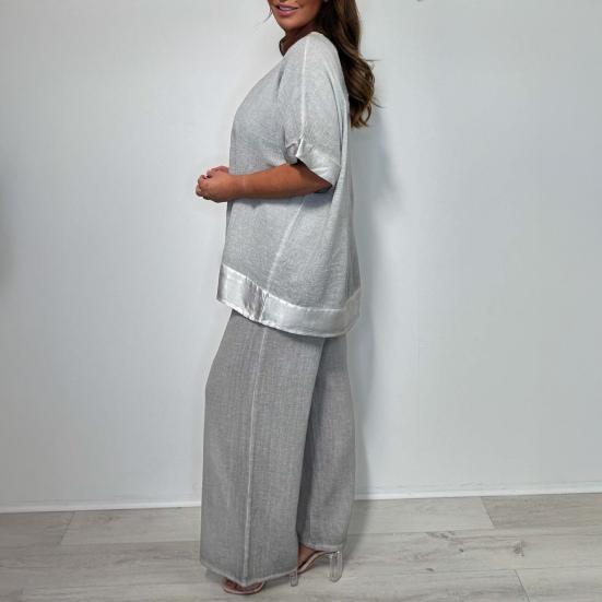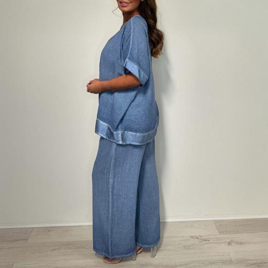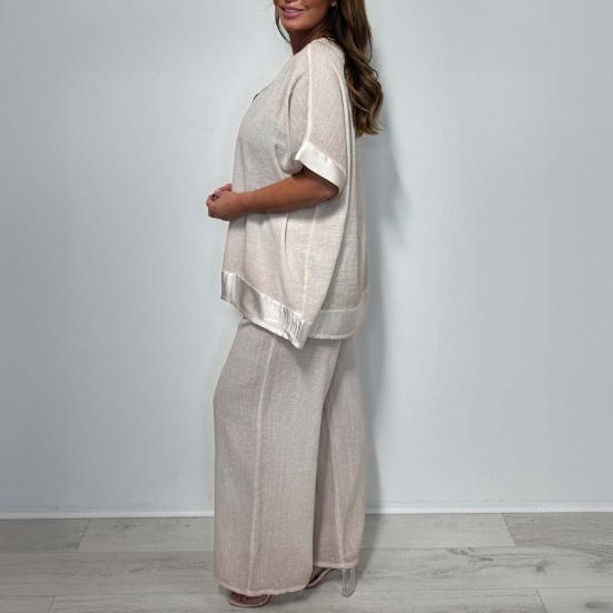 Гибкость комбинирования: Создавайте разнообразные образы, сочетая топ и широкие брюки вместе или по отдельности.. Этот набор позволяет вам экспериментировать с различными стилями и аксессуарами, предлагая бесконечные возможности для создания индивидуального образа.
