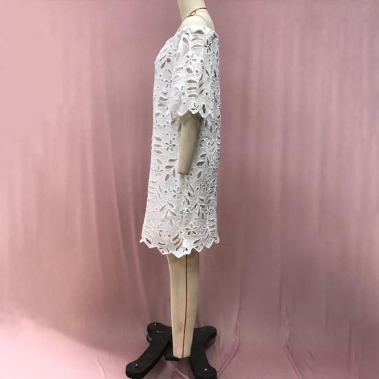 Дополните свой гардероб этим элегантным женским платьем, которое излучает стиль и изысканность.. Это платье, изготовленное из высококачественного полиэфирного волокна, отличается изысканным кружевным декором и сексуальным ажурным дизайном, что добавит вашему образу нотку очарования.. Однотонный дизайн предлагает простую, но в то же время шикарную эстетику, идеально подходящую для различных случаев, таких как офисная одежда, ежедневные прогулки, досуг, летние встречи, поездки на пляж, шопинг, отпуск и вечеринки..