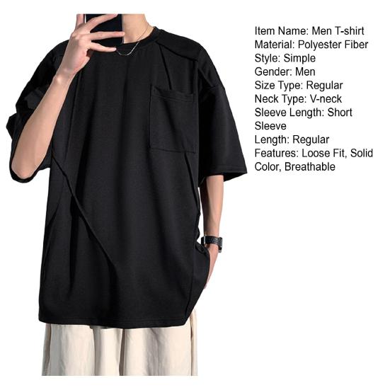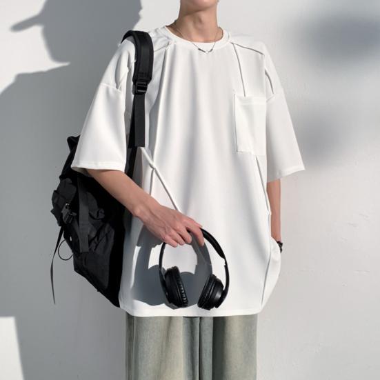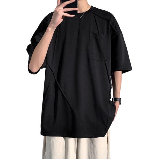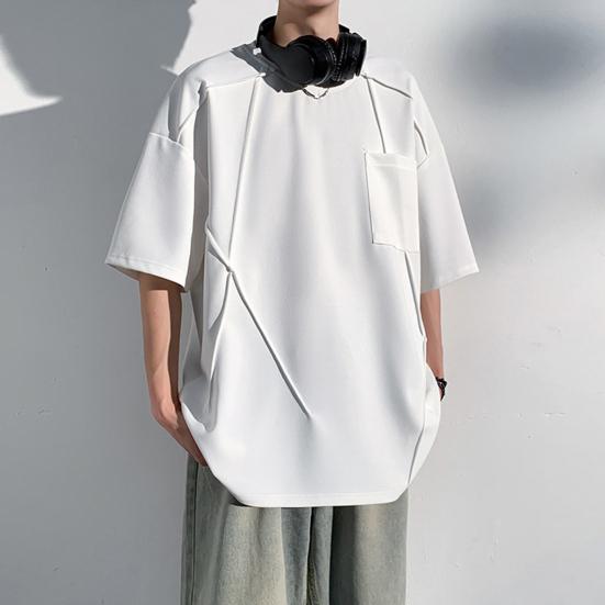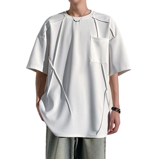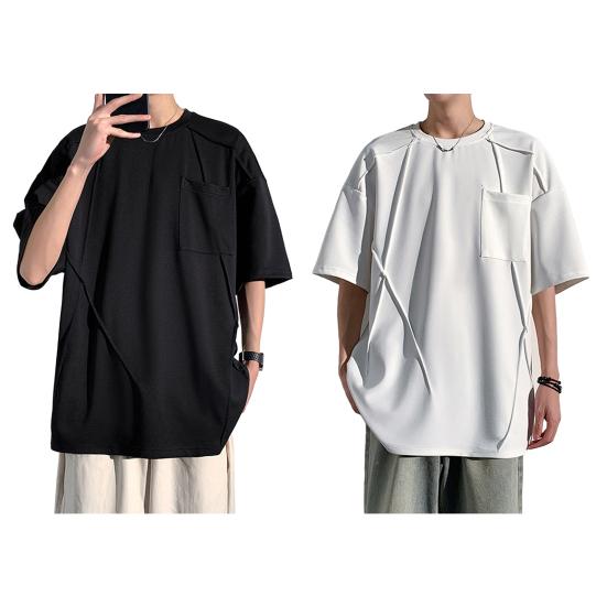 Представляем стильную и универсальную футболку для мужчин. Этот топ с круглым вырезом и короткими рукавами отличается непринужденным и свободным кроем и идеально подходит для различных случаев.. Трехмерные плиссированные линии привносят нотку современного дизайна в классический стандартный стиль.