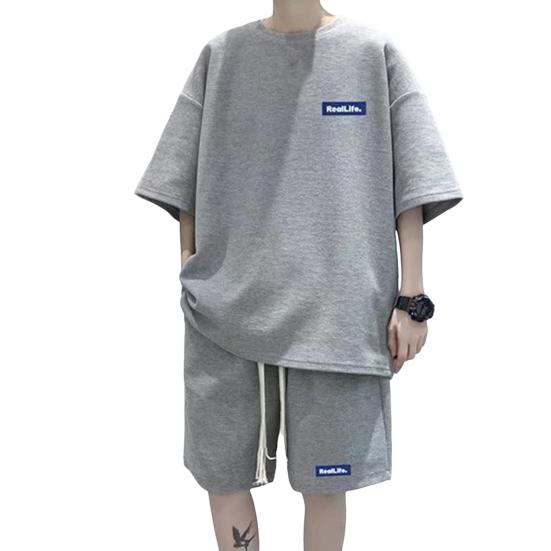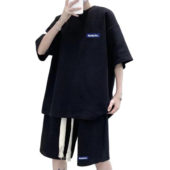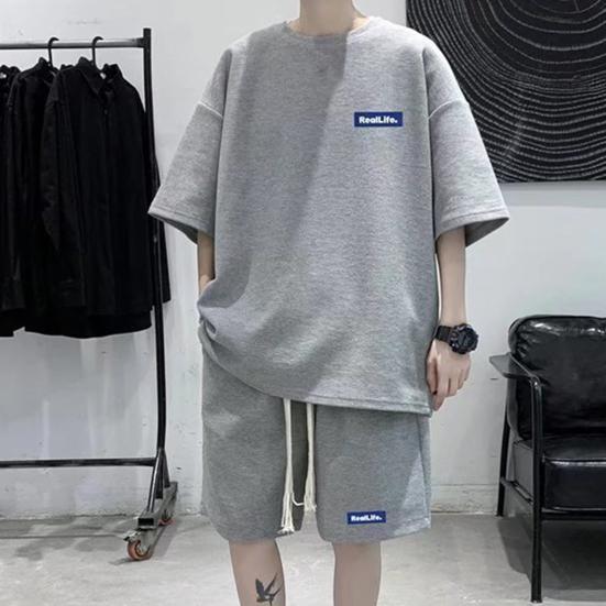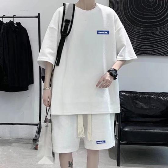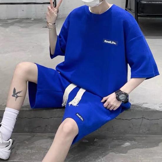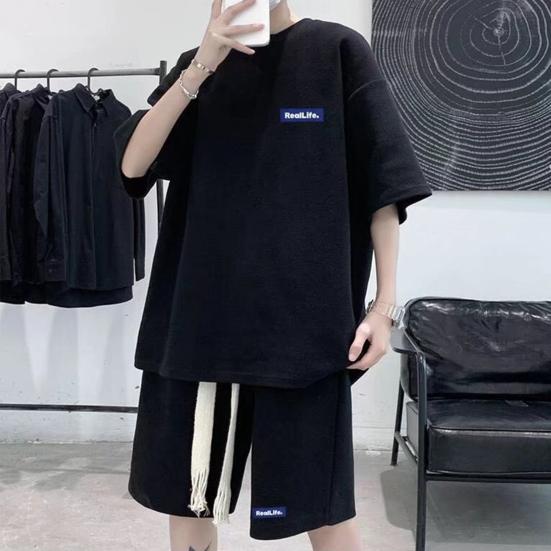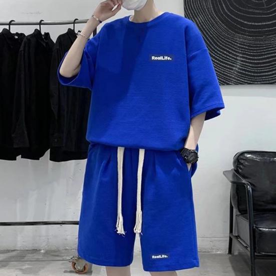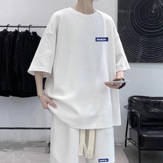 Мужской комплект из 2 предметов, повседневный спортивный костюм, шорты, летний свободный спортивный костюм с коротким рукавом, спортивный комплект, домашняя одежда с вафельной текстурой, подходящий костюм