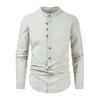 Материал и дизайн: Эта мужская рубашка изготовлена из хлопка и льна, что обеспечивает легкость, воздухопроницаемость, мягкость и приятную для кожи текстуру.. Однобортный фасон с воротником-стойкой излучает ретро-очарование, что делает его универсальной вещью для разных случаев.