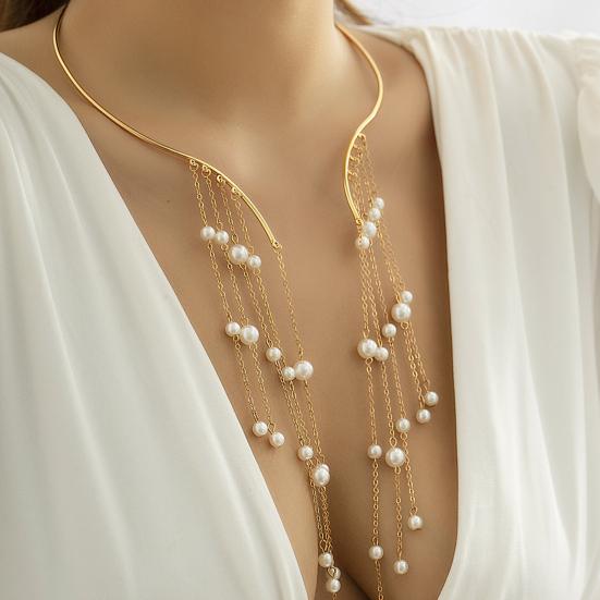 Длинный металлический открытый чокер с кисточками, звездой, искусственным жемчугом, бусины, воротник-кисточка, ожерелье на ключицу, украшения для груди и тела для женщин — купить товар онлайн с бесплатной доставкой по всему миру!