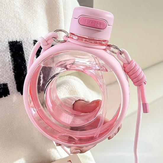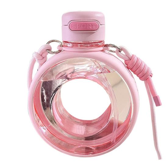 Стильная форма пончика: Оцените очарование этой милой бутылки для воды с О-образным дизайном.. Портативный и модный, его можно держать в руке или удобно повесить на плечо.