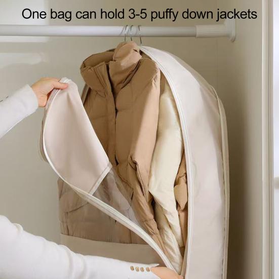 В отличие от других органайзеров, эти сумки-вешалки сохраняют пушистость вашего пуховика и предотвращают появление складок и деформаций.. Ваша одежда останется аккуратной и без складок даже при длительном хранении.. Увеличьте пространство в гардеробе с помощью самокомпрессионных молний, которые позволяют хранить до 5 предметов одежды, включая зимние куртки, костюмы и пальто.. Освободите больше места в шкафу для новых вещей, сохраняя при этом порядок в одежде.