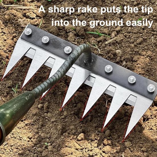 Многофункциональный дизайн: Эти садовые грабли с несколькими зубьями эффективно удаляют сорняки, листья и мусор с грядок, газонов и цветников.. Его прочная конструкция позволяет удалять соломину и аэрировать почву, способствуя оптимальному росту растений.