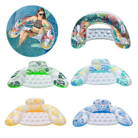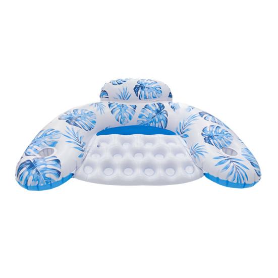 Удобный держатель для стакана: Оставайтесь свежими во время плавания с помощью встроенного подстаканника в этом надувном шезлонге. Потягивая любимый напиток, вы стильно отдыхаете на воде.