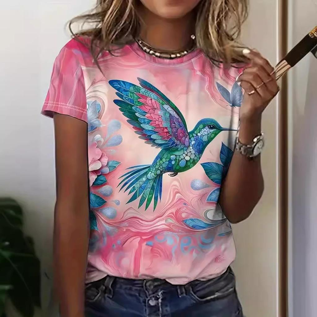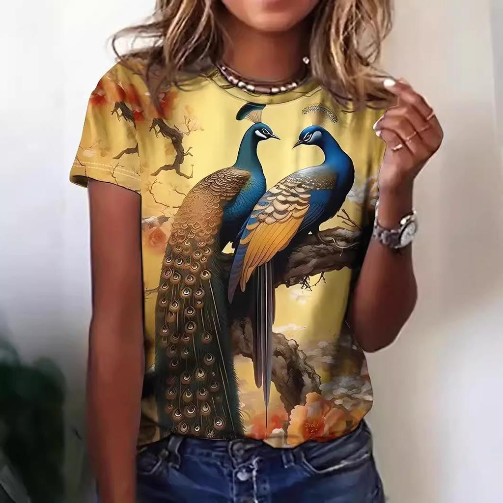 Летний топ с круглым вырезом и принтом 3D птицы павлина, модные повседневные женские футболки с короткими рукавами