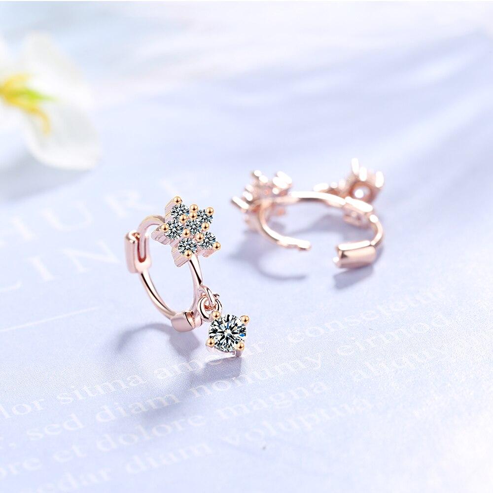 Серьги-кольца Huggies со звездой из розового золота и прозрачным фианитом с пятью лепестками, противоаллергические украшения — купить товар онлайн с бесплатной доставкой до всему миру!