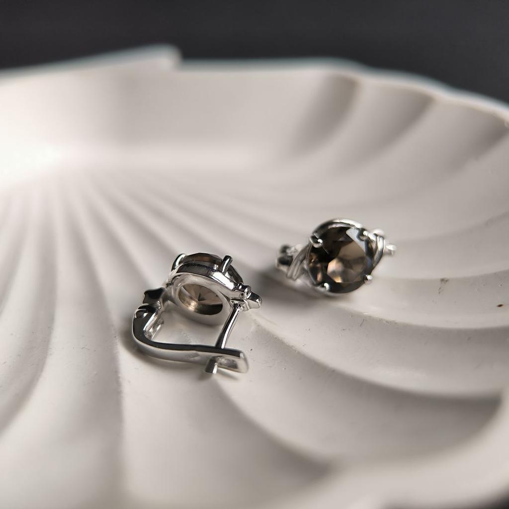 серебряные серьги с натуральным раухтопазом (дымчатым кварцем) 3.467ct