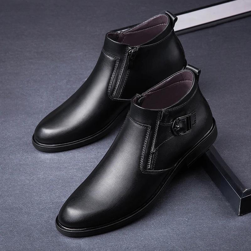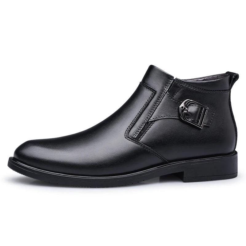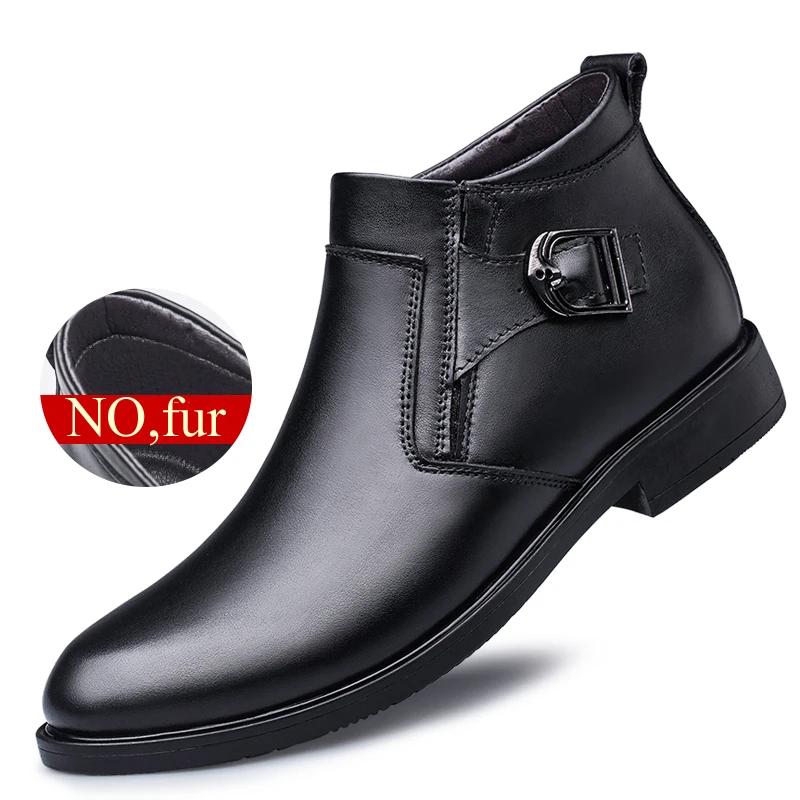 Зимние новые брендовые кожаные ботинки «Челси», остроносые ковбойские ботинки, деловые теплые зимние ботинки на низком каблуке, мужская рабочая обувь с высоким берцем