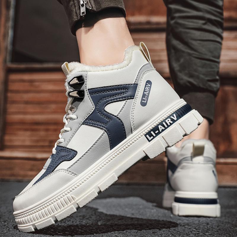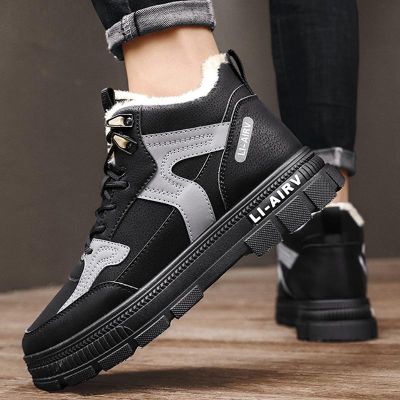 Мужские зимние ботинки на платформе, теплые, меховые, короткие, модные, на шнуровке, повседневные, мужские ботинки для отдыха, нескользящие, из хлопка, кроссовки