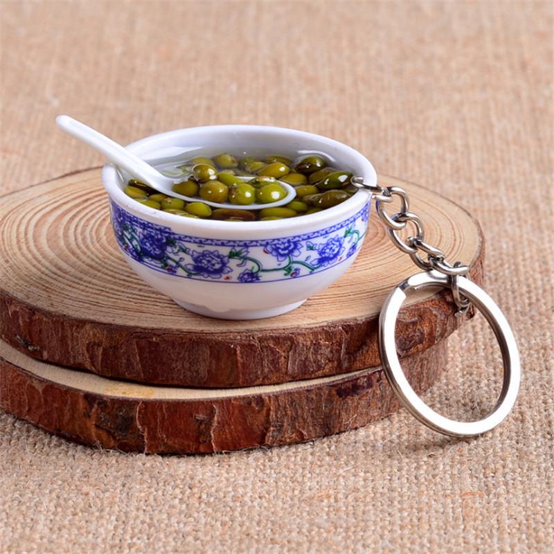 Брелоки для ключей, имитация китайской еды, синий и белый фарфор, брелок для боулинга, автомобильные брелоки