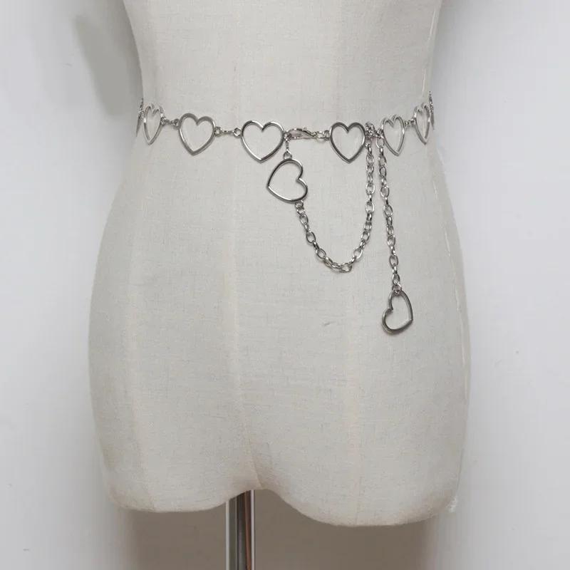 Металлическая цепочка на талию Love Heart, универсальный пояс, женские декоративные вставки, простое модное платье с клетчатой юбкой Jk, цепочка на талию