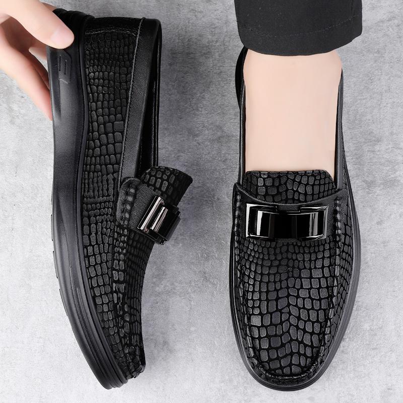 Классические черные мужские туфли из воловьей кожи в весенне-осеннем стиле, повседневные туфли из натуральной кожи, модные брендовые мужские удобные нескользящие мокасины