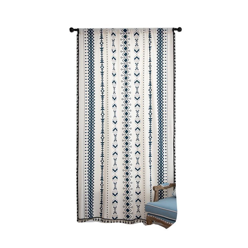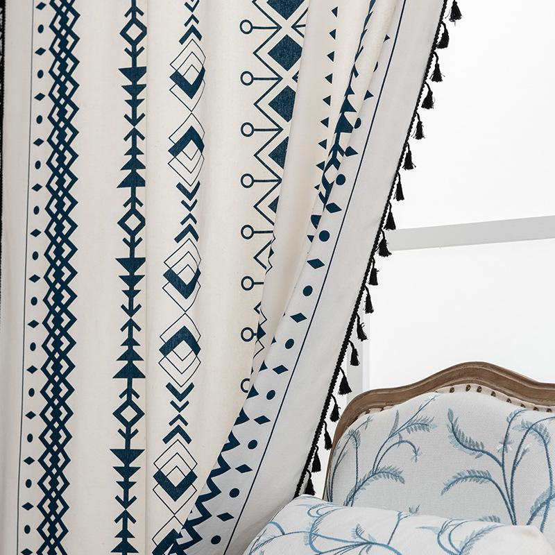 Готовые шторы: Хлопковый и льняной принт, черные кисточки, стиль бохо, эркерные шторы, готовые шторы