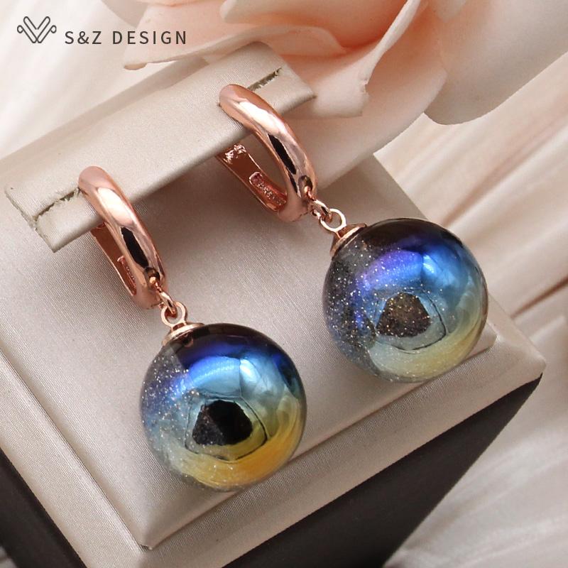 Модные круглые двухцветные бусины серьги-подвески для женщин свадебный темперамент розовое золото цвета ювелирные изделия