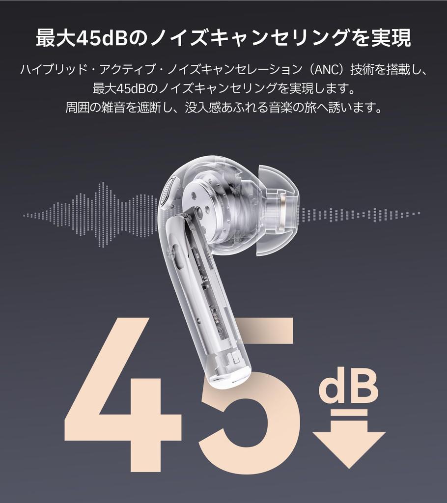 [-45 дБ Активное шумоподавление] Оснащен гибридной системой активного шумоподавления (АНК) технология, позволяющая достичь шумоподавления до 45 дБ. Он блокирует окружающий шум и создает среду, в которой вы можете лучше сосредоточиться.. Доступен широкий спектр опций, соответствующих вашим предпочтениям и условиям окружающей среды, включая высокий уровень шумоподавления, низкий уровень шумоподавления, режим подавления ветра и режим внешней звукозаписи.. В тишине музыка звучит более отчетливо и глубоко, приглашая вас в захватывающее музыкальное путешествие.