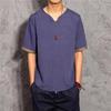 Мужская летняя корейская футболка из хлопка и льна с V-образным вырезом и коротким рукавом — дышащая, универсальная, модная, с коротким рукавом для больших размеров