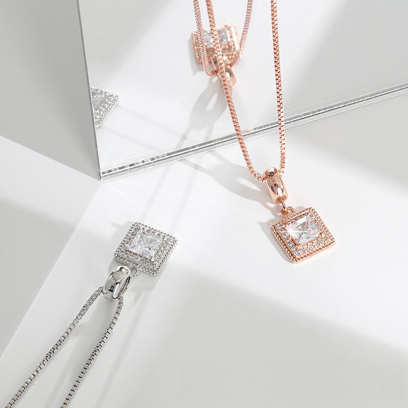 Ожерелье с квадратной подвеской из циркония, оригинальный дизайн, модное, простое и высококачественное цветное ожерелье в виде квадратной сумки из сахара.