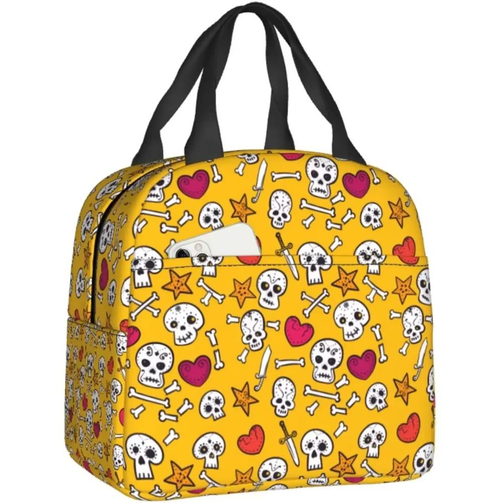 Изолированная сумка для обеда для детей с черепами и сердцами, многоразовая сумка-холодильник, мини-холодильник для детей, взрослых, офиса, работы, пикника, пляжа