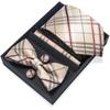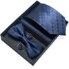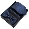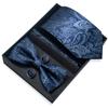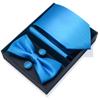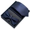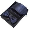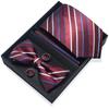 В комплект входит галстук, бабочка, квадратный шарф, запонки и черная подарочная коробка.