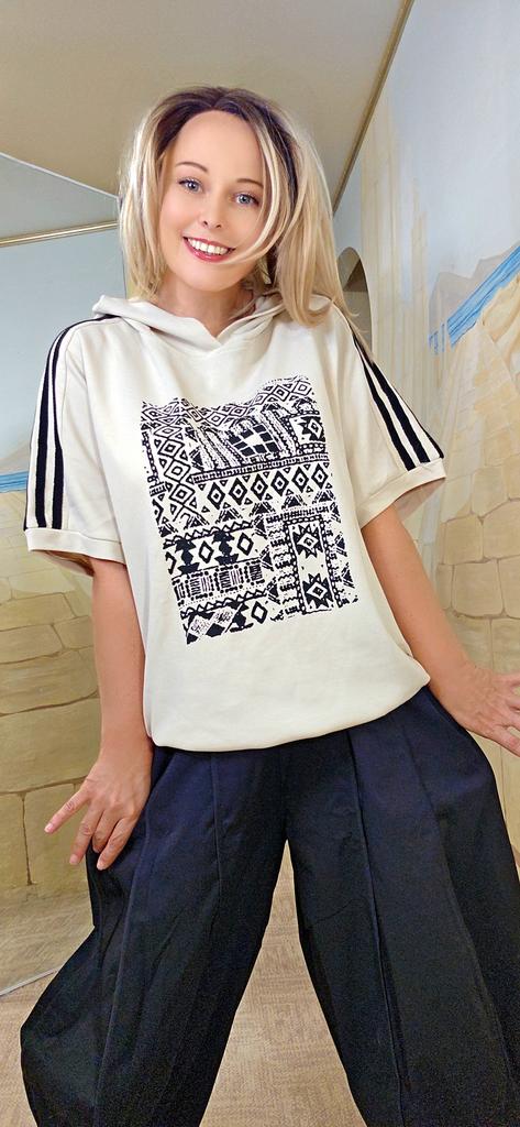 Влюбилась в эту крутую футболку с первого взгляда❤️ DIMANAF рулит)) Какая она клевая)) мягкая, шелковистый нежный хлопок, не тонкий, очень крутого качества. Даже снимать не хочется, такая она приятная)) Рисунок стильный, на рукавах лампасы)) цвет именно такой как на моих фото, бежевый. Люблю футболки с капюшоном, они смотрятся немного по хулигански😉👍 Ог заявлен 116см, по моим замерам даже чуть больше 118см, но на мой ОГ 95 сидит чудесно, свободно, именно так, как хотелось. По низу утяжка с металлическими держателями. Пошив аккуратный, фабричный. Девочки, покупайте, не сомневайтесь, если нравится, точно будете довольны🧡 От души рекомендую! Приглашаю в гости ко мне в телеграмм канал olgaluk_nice Или по названию канала Купите это немедленно Приятная и легкая атмосфера, хорошее настроение ⚘️❤️ ссылки на вещи из обзоров и не только)) 🍊🧡 А на канале ПРИСТРОЙ https://t.me/pristroyjoom Вас ждут вещи со скидками))