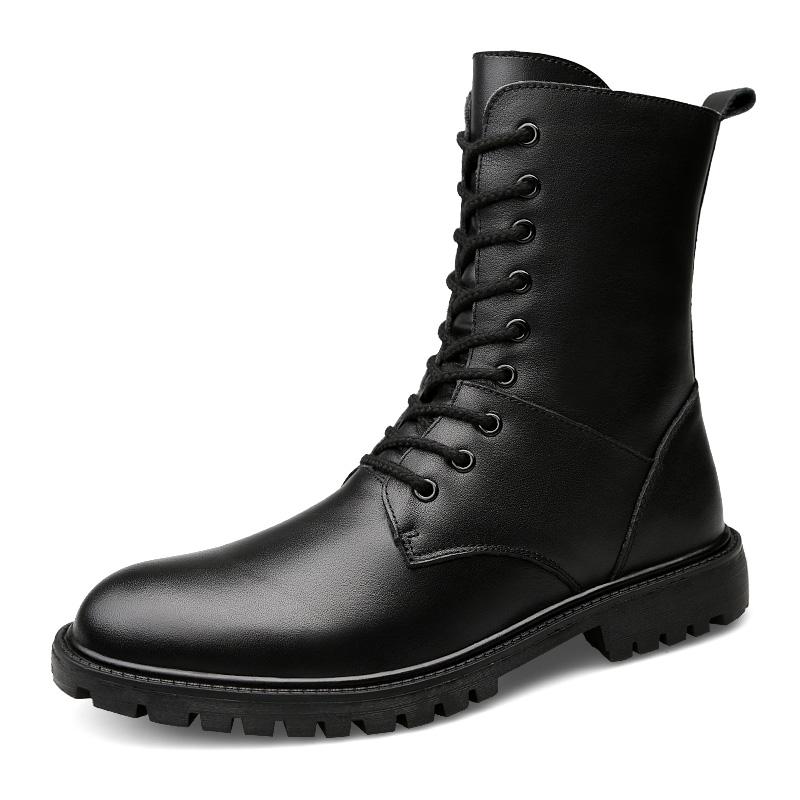 Новые теплые мужские зимние кожаные ботинки на шнуровке, водонепроницаемые, на толстой подошве, резиновые, длинные ковбойские ботинки для отдыха, остроносые туфли в стиле ретро