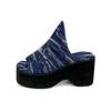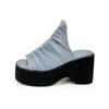 Женские модные джинсовые синие босоножки на танкетке, летние босоножки на массивном каблуке на платформе, женская пляжная обувь на толстой подошве, большие размеры 43