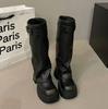 Зимние женские байкерские ботинки, современные ботинки 2024 года, модные женские ботинки с пряжкой на ремне и платформе, длинные ботинки-трубы, повседневные женские ботинки до колена