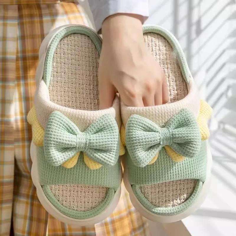 Тапочки женские домашние тапочки Comzy нескользящие домашние хлопковые туфли милые банты плоские тапочки парные тапочки весна лето — купить товар онлайн с бесплатной доставкой по всему миру!