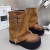 Модные панк-сапоги для женщин, сапоги на платформе, элегантные панк-сапоги на молнии, 2024, новые кожаные женские туфли с круглым носком, обувь для мотоциклистов