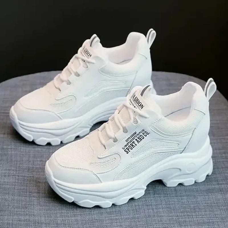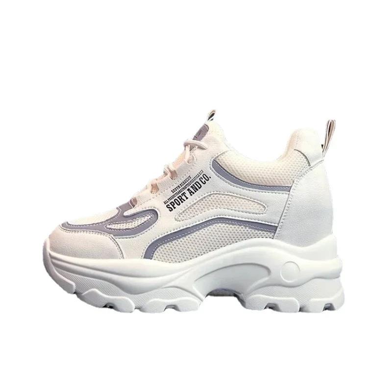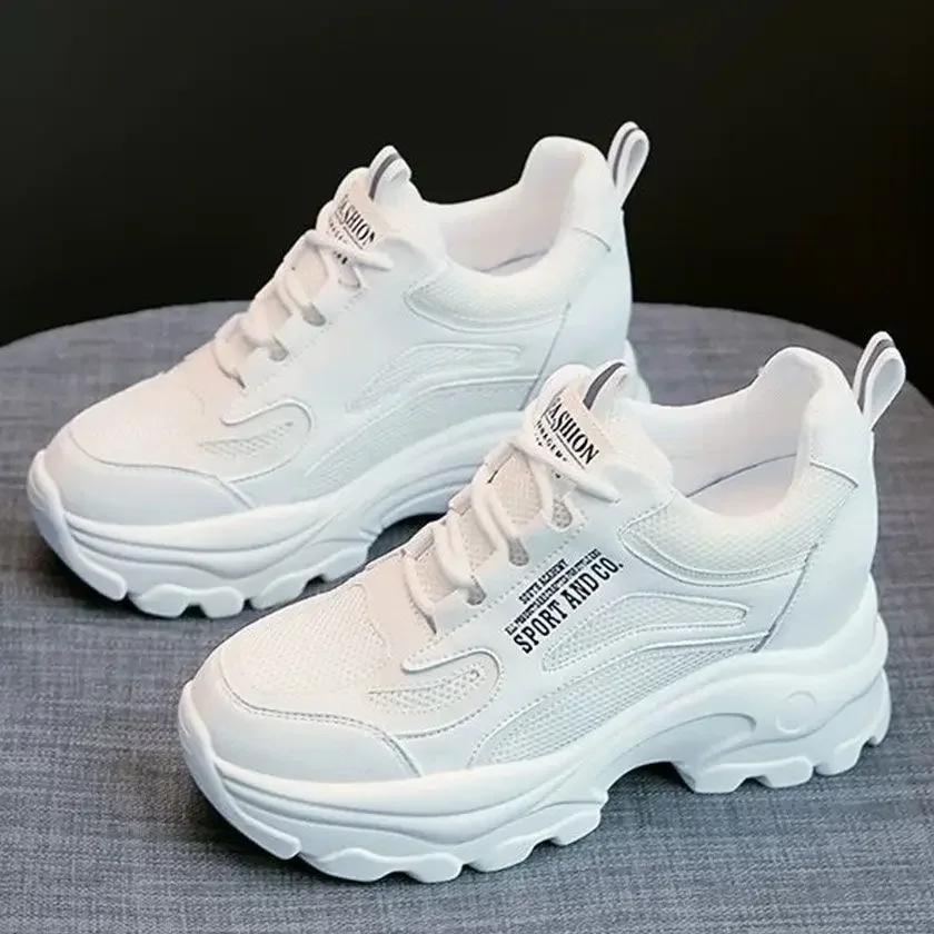 Туфли на скрытом каблуке белого цвета, модная женская обувь, дышащая, толстая подошва, универсальная повседневная обувь, удобные женские кроссовки 2024