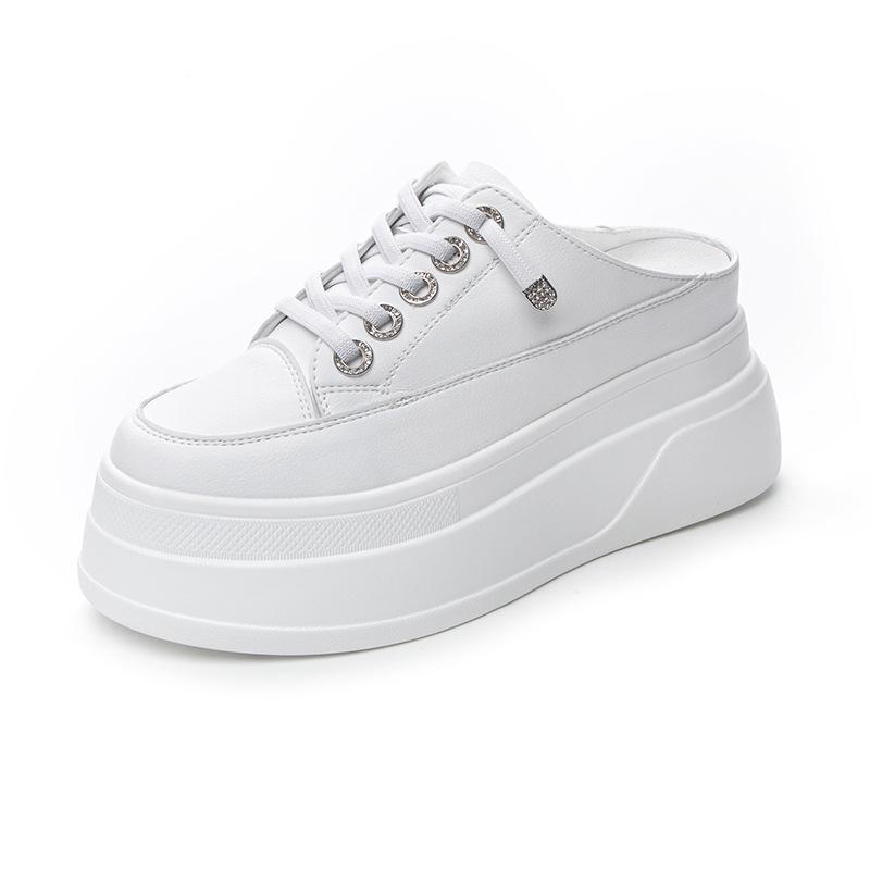 Тапочки из натуральной кожи, женская повседневная обувь, женские тапочки на платформе, на шнуровке, белые туфли с увеличенным каблуком, низкая женская обувь