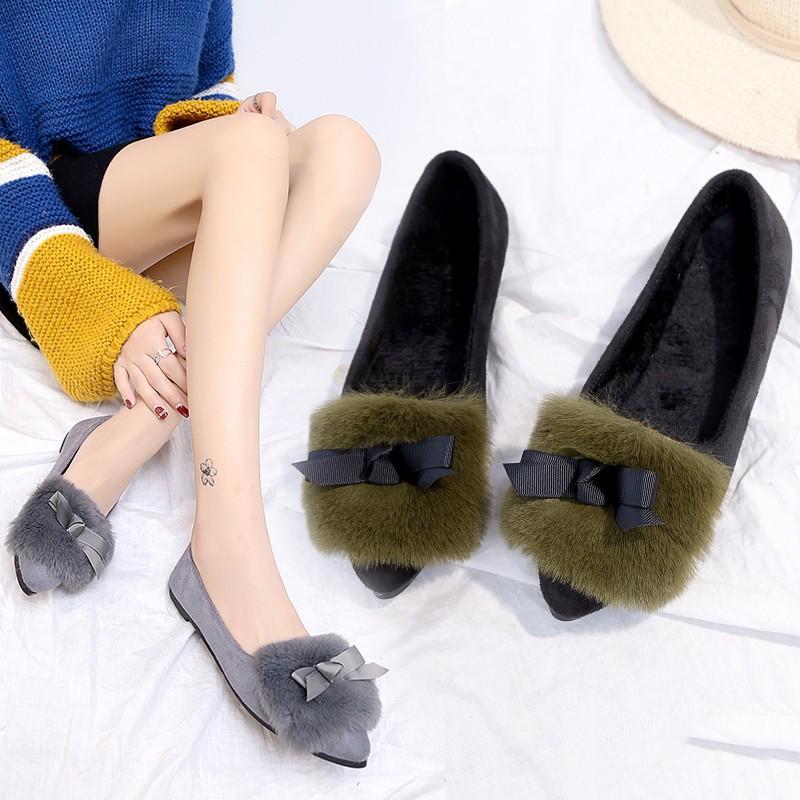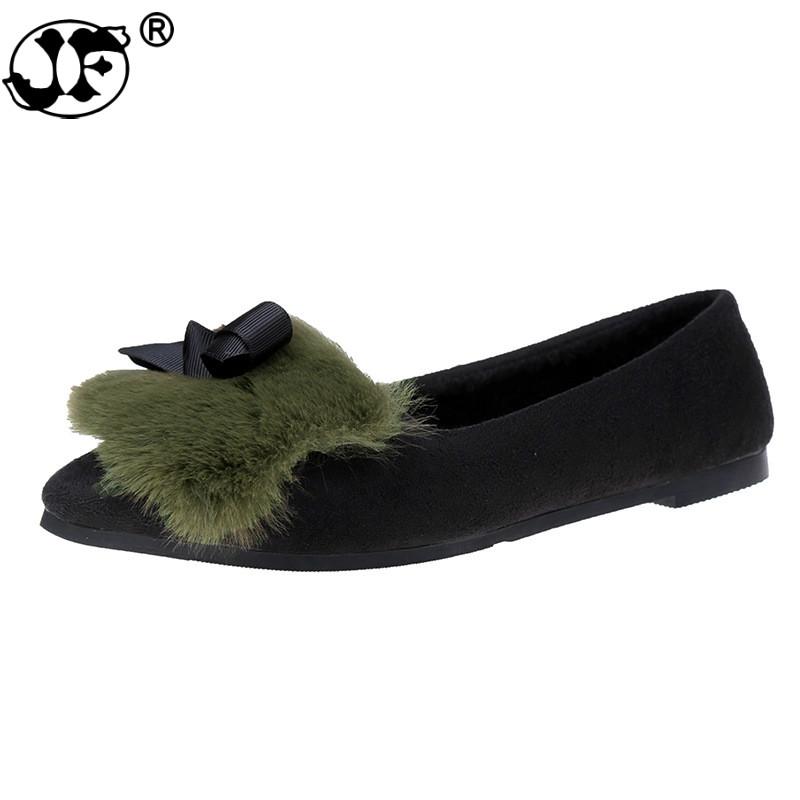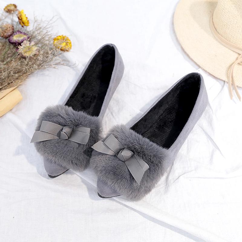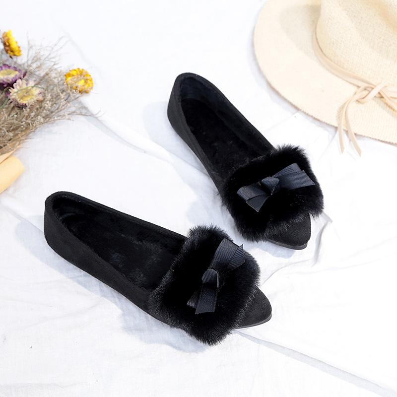 Меховые балетки Короткие плюшевые женские туфли Искусственный мех Слипоны на плоской подошве Зимняя обувь Удобные туфли-лодочки с острым носком 568