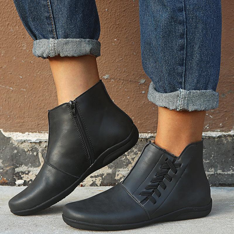 Женские ботинки зимние ботинки женская обувь из искусственной кожи до щиколотки зимняя плоская ретро мода повседневная обувь без застежек с круглым носком 2024 563