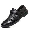 Мужские сандалии из натуральной кожи, мужские летние полые дышащие кожаные туфли, мужские повседневные мягкие удобные туфли на плоской подошве, европейские размеры 38-48
