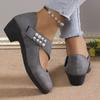 Женская повседневная обувь 2024 Осень Мода Жемчуг Круглый носок Средний каблук Женская Повседневная Обувь на высоком каблуке Массивная обувь Обувь Большой размер 43