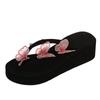 Женские шлепанцы-бабочки на танкетке 2024 года, летние шлепанцы, новые римские шлепанцы на высоком каблуке и платформе с жемчугом, женские пляжные шлепанцы, размер 42