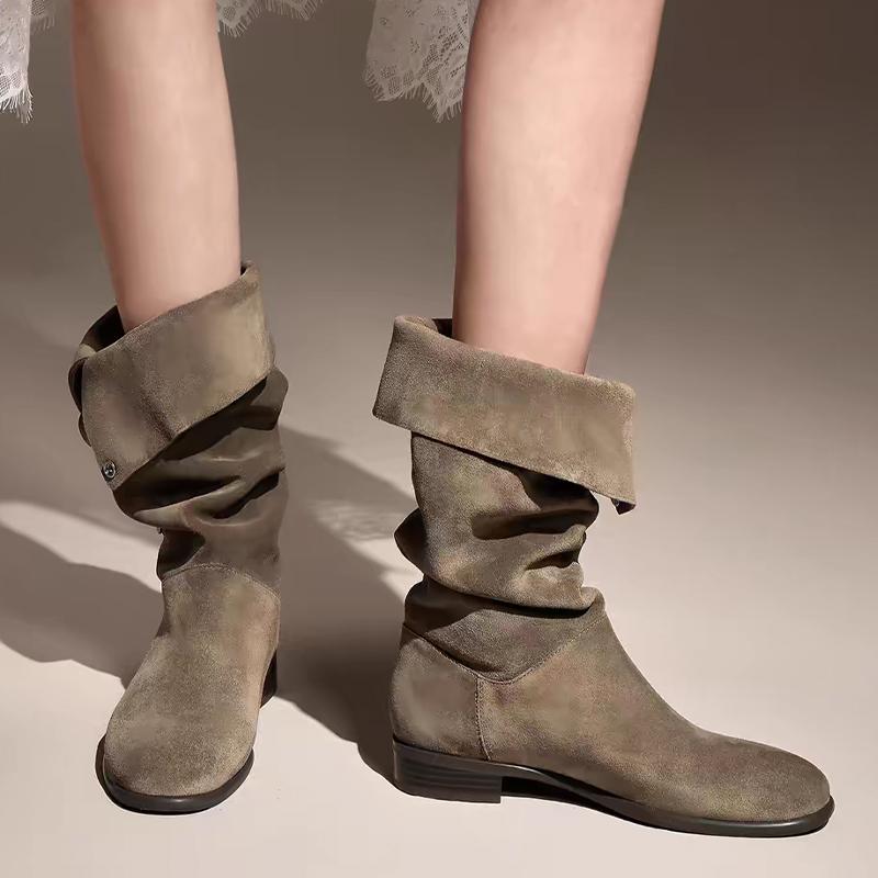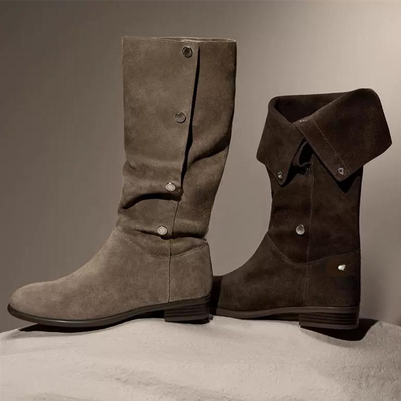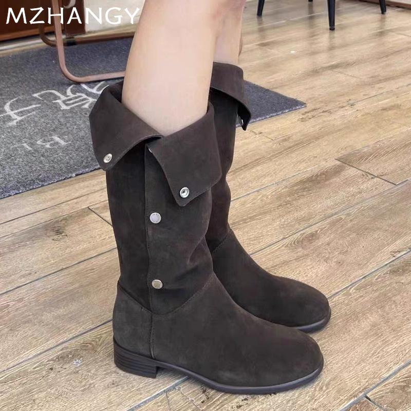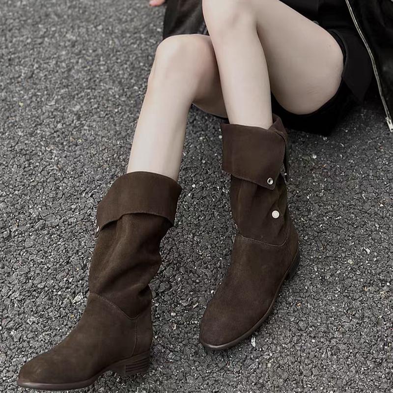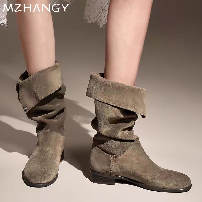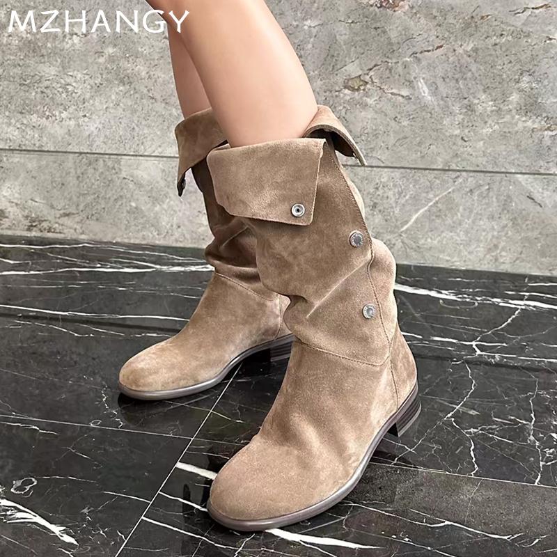 Женские замшевые зимние сапоги средней высоты на плоской подошве, модная обувь для женщин 2025 года, дизайнерские зимние мотоциклетные сапоги, новые женские ботинки Chelsea Botas