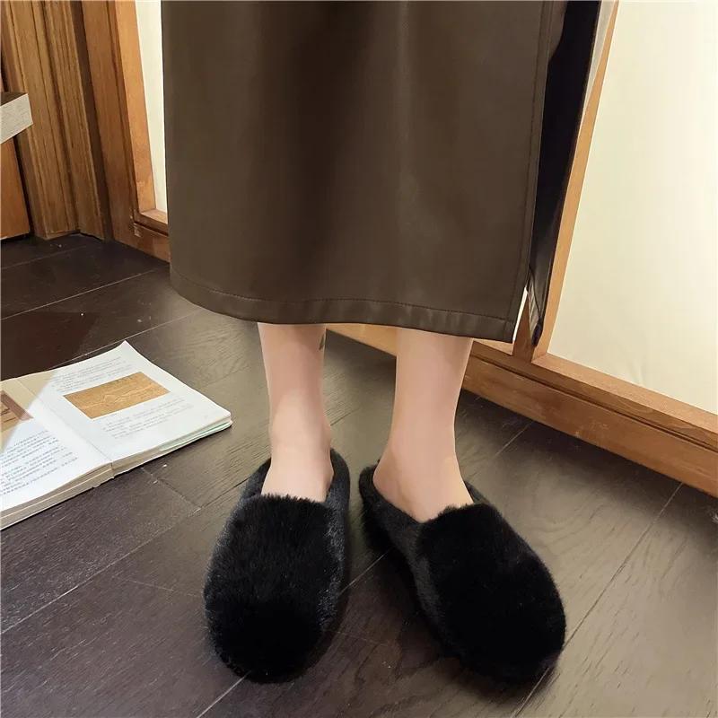 2024 женские тапочки Baotou, модные однотонные тапочки с мягкой подошвой, теплые, на плоской подошве, удобные, повседневные, теплые домашние тапочки