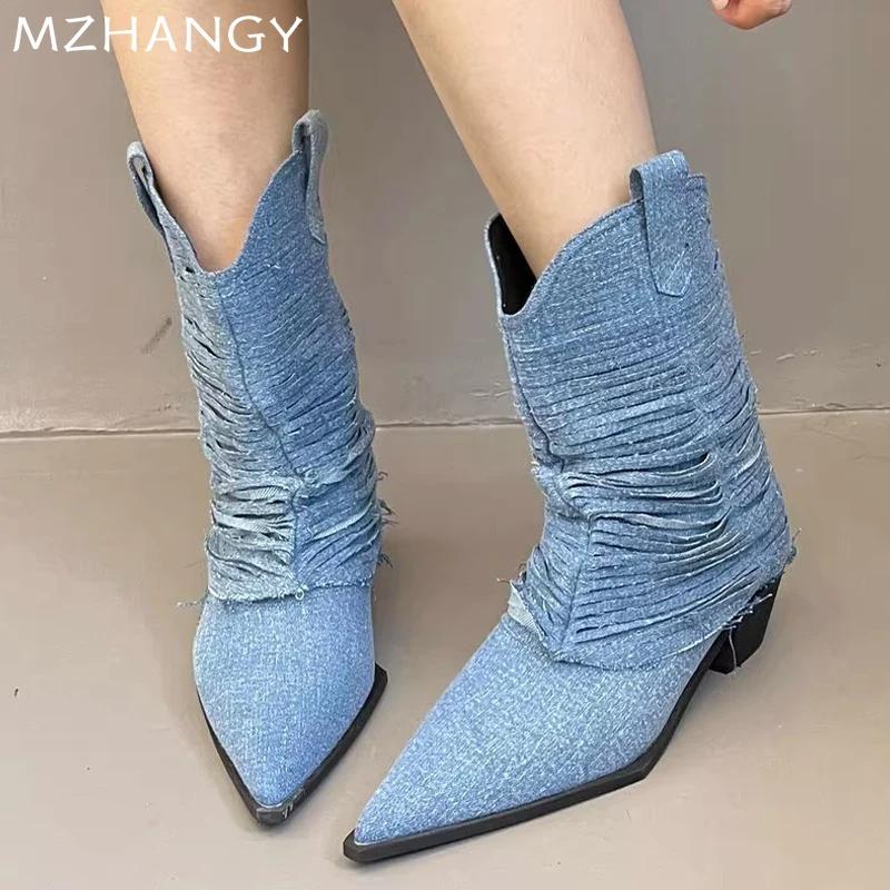 Ковбойские высокие сапоги женские ботильоны остроносые туфли женские зимние сапоги 2024 сексуальные туфли туфли-лодочки зимние челси женские ботинки