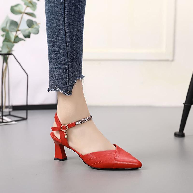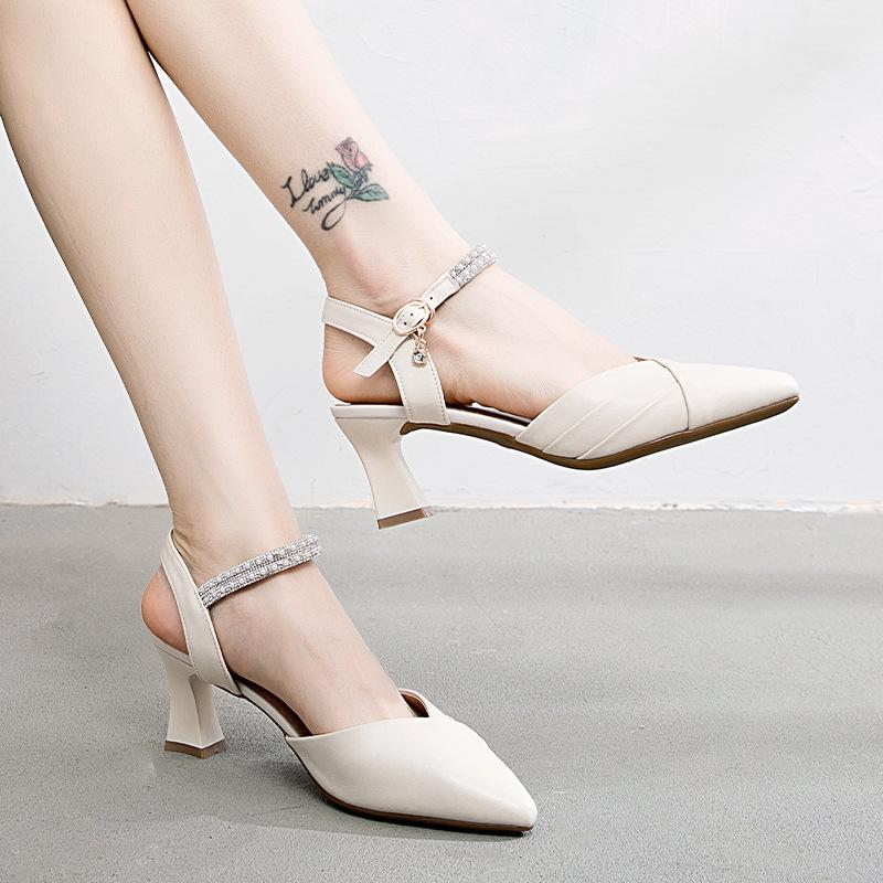 Женские босоножки на каблуке Hells из натуральной кожи 2024 года, модные туфли с острым носком и пряжкой на высоком каблуке, сексуальные туфли для вечеринок, банкетные туфли