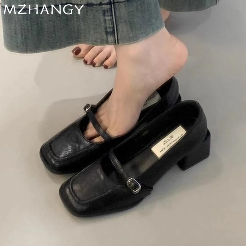 Туфли Мэри Джейн на среднем каблуке, модные туфли с квадратным носком, женские туфли с массивным каблуком, тренд 2024 года, зимние туфли-лодочки, новые женские туфли Zapatillas