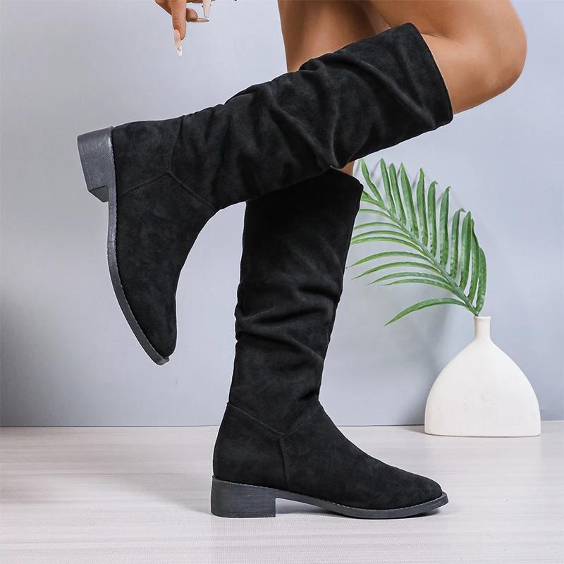 Женские замшевые сапоги челси до колена на среднем каблуке, модные зимние туфли 2024 года, новые туфли для ходьбы, классические трендовые туфли Chaussures Femme