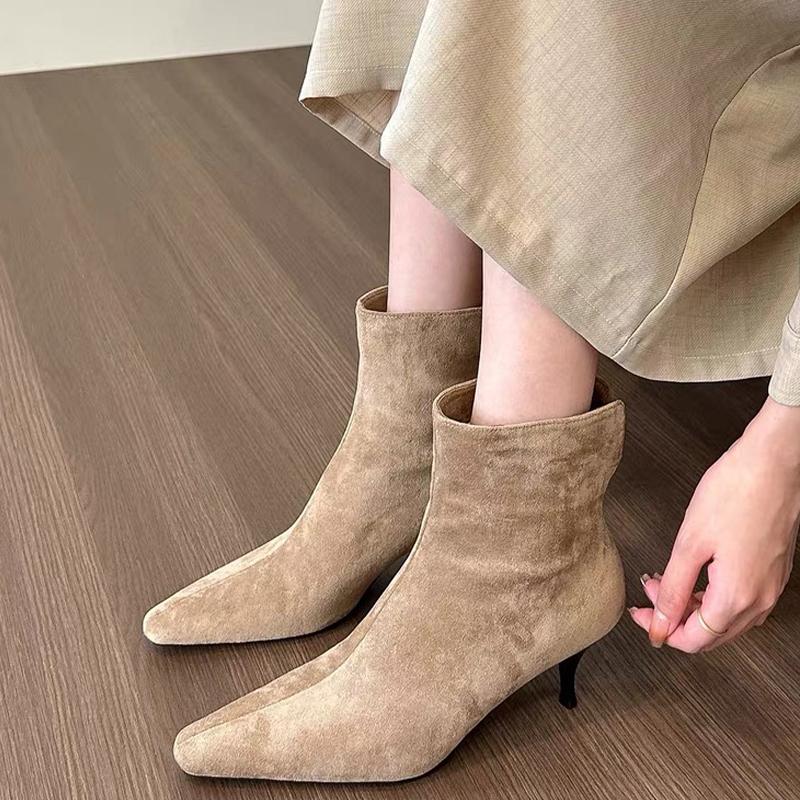 Женские ботильоны на высоком каблуке, замшевые туфли с острым носком, дизайнерская женская обувь, тренд 2024 года, новые туфли для вечеринок, туфли-лодочки, платье Femme Zapatos