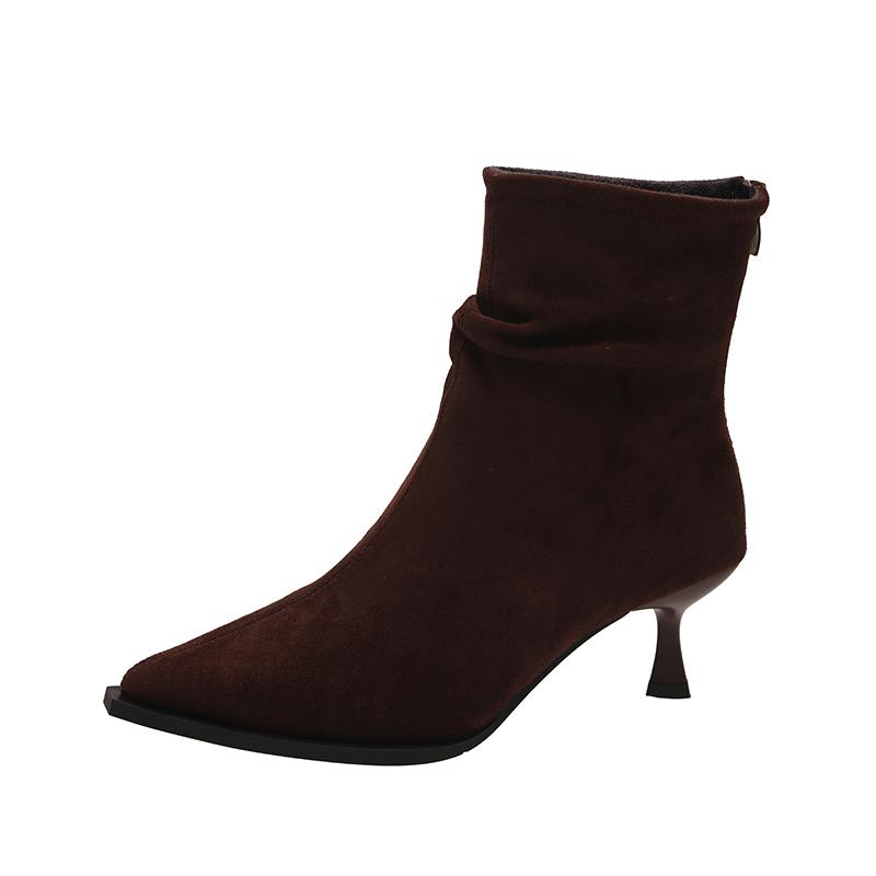 Острый носок женские ботильоны замшевые сексуальные туфли на среднем каблуке элегантные туфли женские 2024 тренд новые зимние сапоги туфли-лодочки зимняя мода женские ботинки