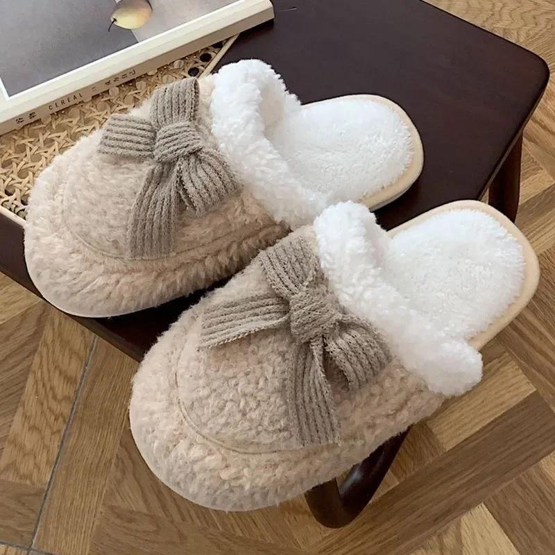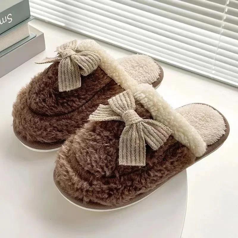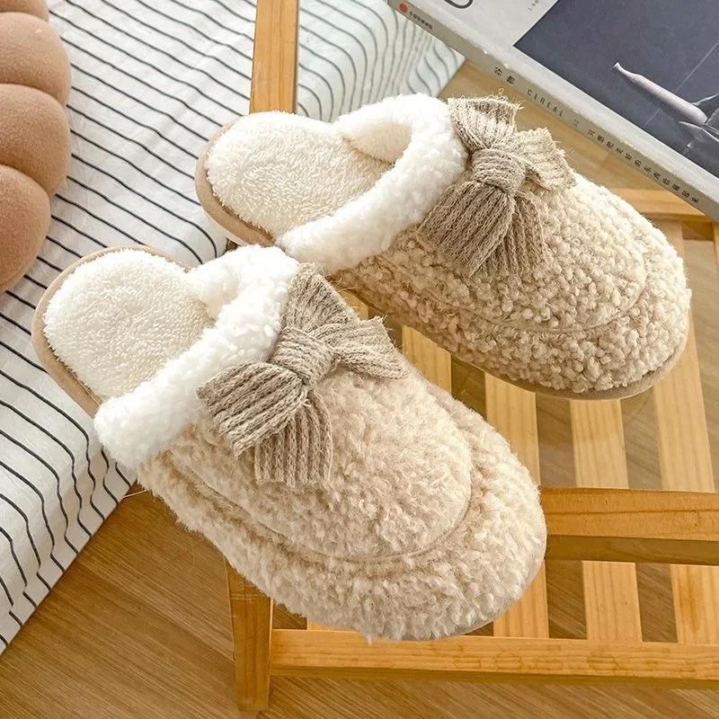 Женские хлопковые тапочки осень-зима грязеотталкивающая толстая подошва нескользящая ультрамягкая удобная студенческая тапочка с бантом Chanclas Mujer