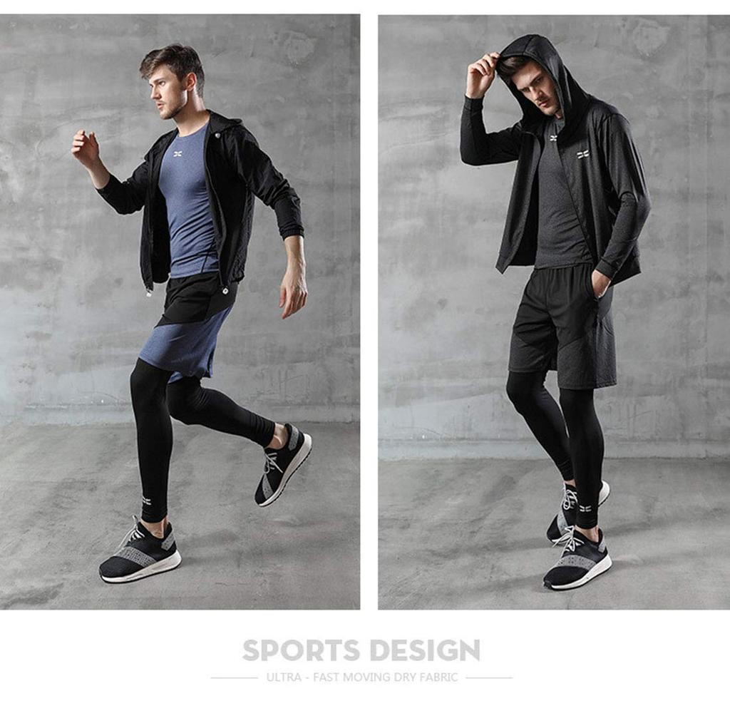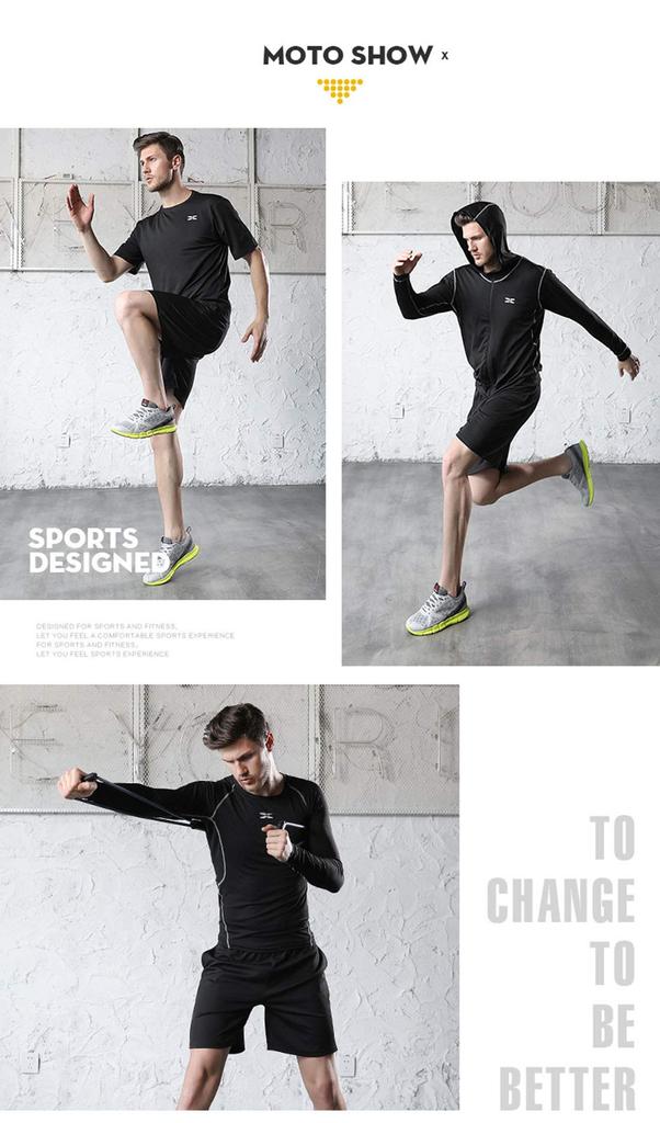 Компрессионная одежда для тренировок, дышащая и устойчивая к запахам, для бега, с длинным рукавом, с коротким рукавом, с короткими рукавами, с быстрой застежкой S [foveitaa] Комплект, мужская одежда, 5 предметов