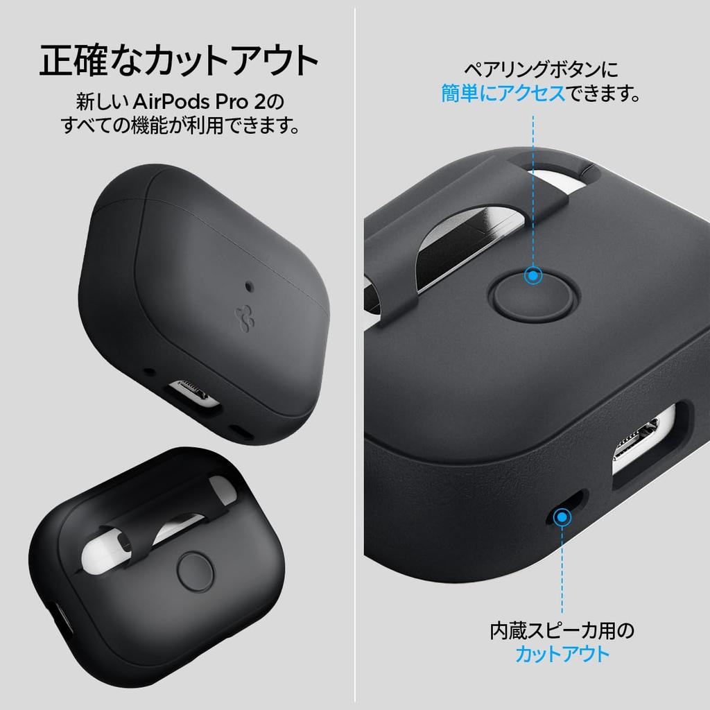 Чехол Spigen Airpods Pro2 с ремешком, силиконовым карабином, простой чехол для хранения, легкий, устойчивый к царапинам, пылезащитный, амортизирующий, беспроводная зарядка