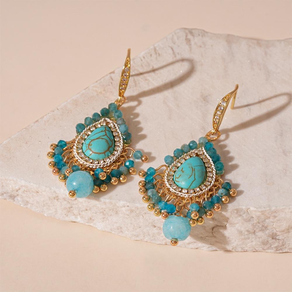 Серьги в стиле бохо-богемия с бирюзой Серьги-подвески из бирюзы Пляж